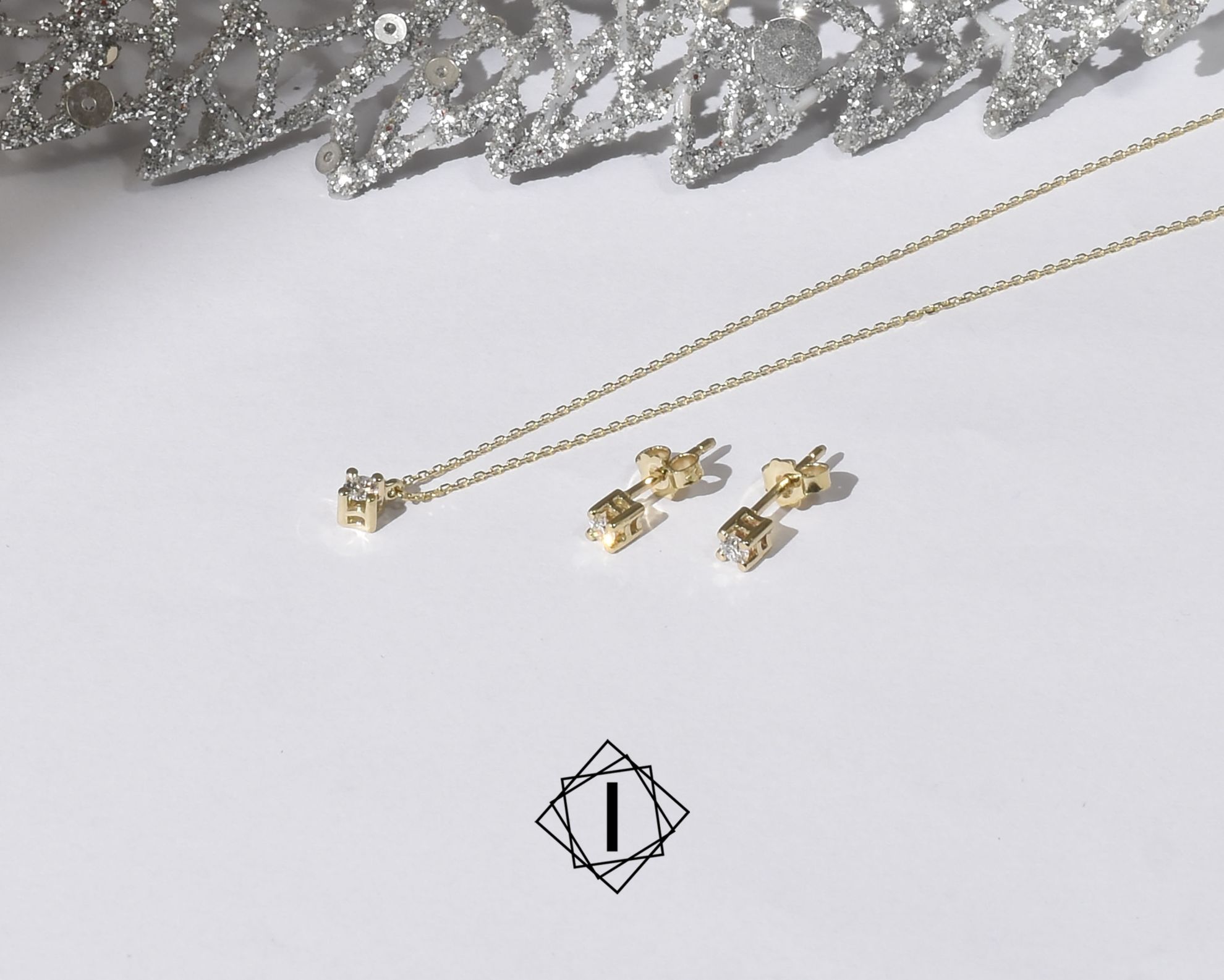 Prelepi komplet od žutog zlata koji čine ogrlica i minđuše sa dijamantima.