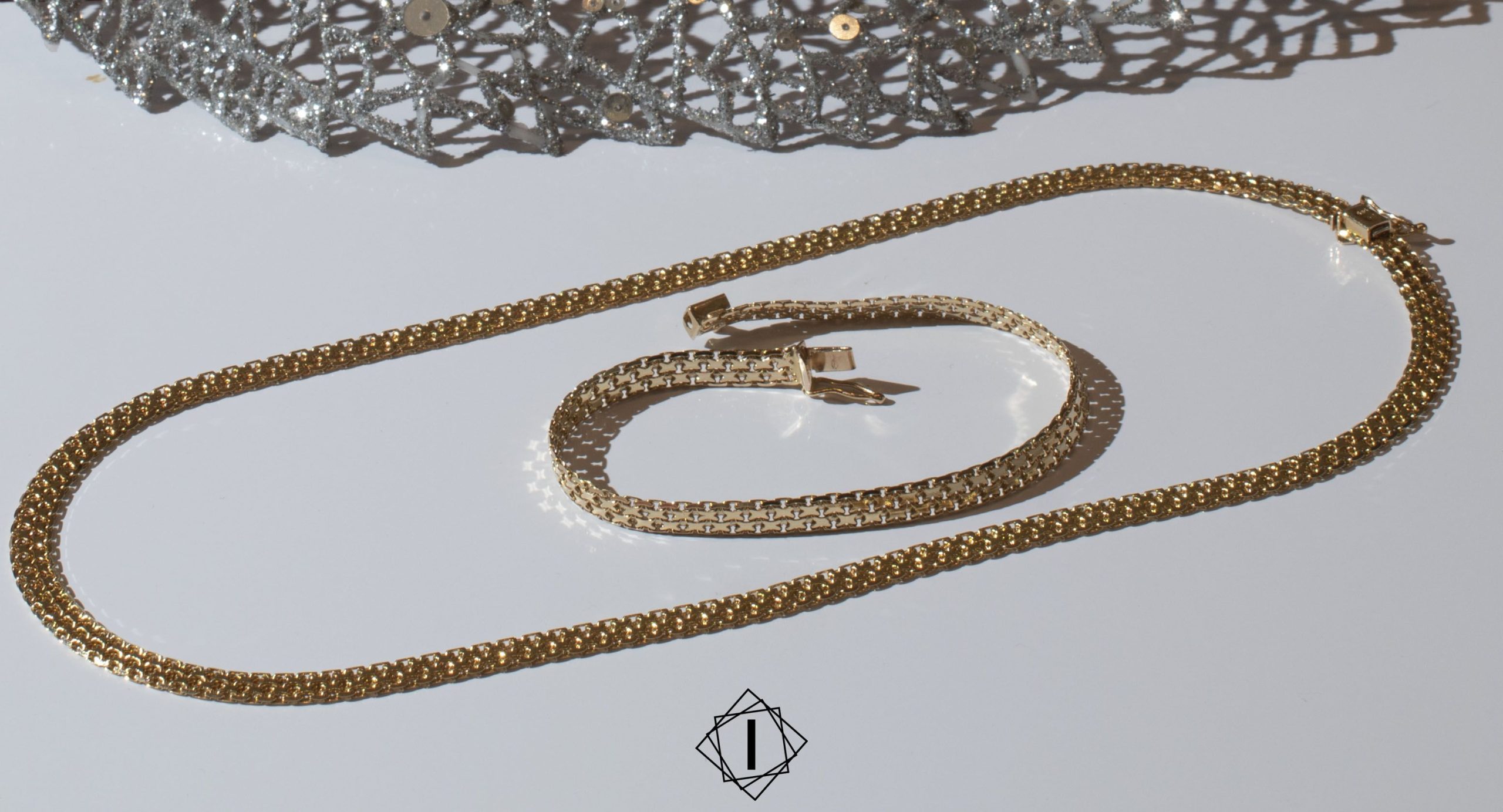 Komplet koji činimasivna zlatna narukvica i ogrlica. Jedinstveni dizajn.