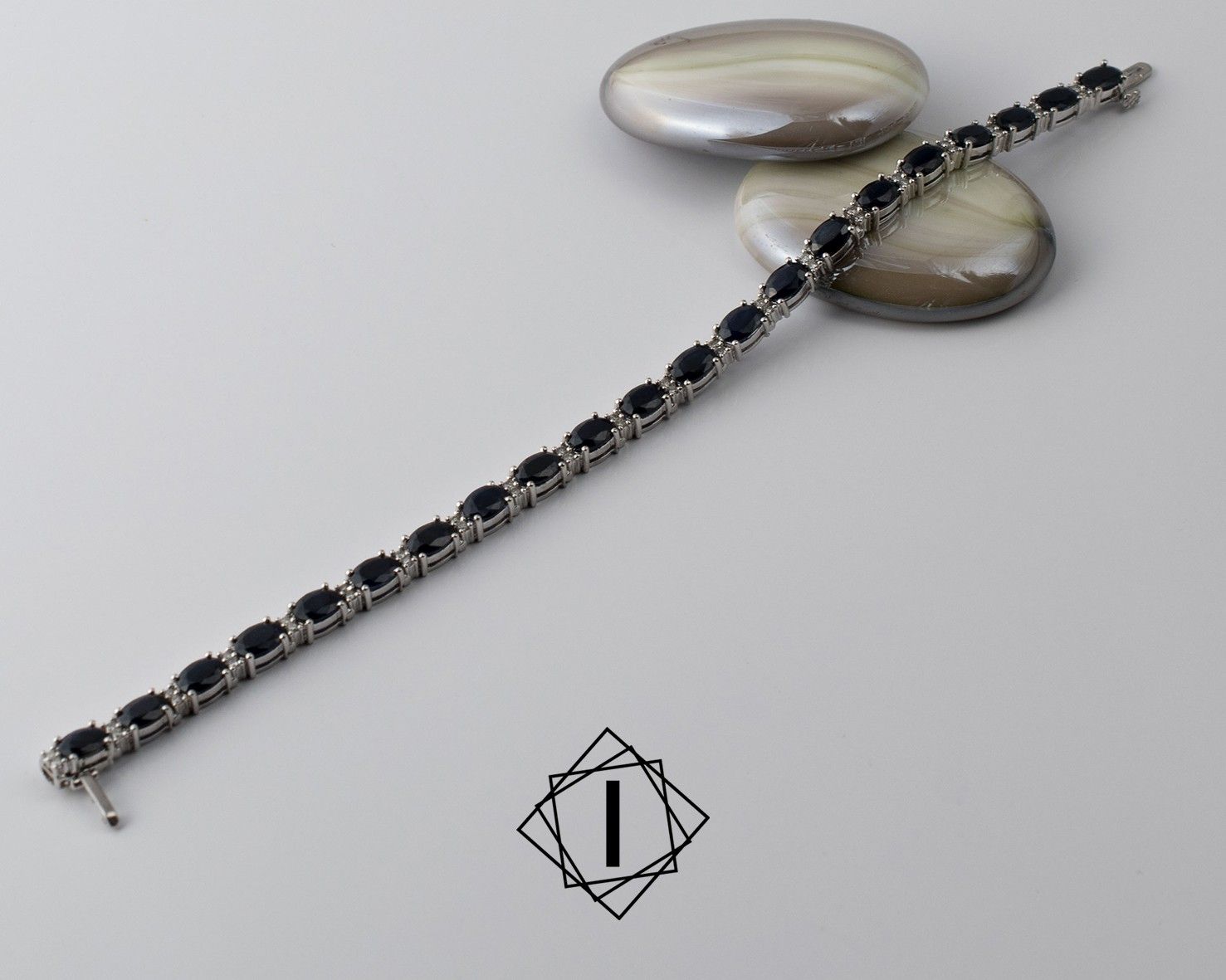 Narukvica od belog zlata sa brilijantima i safirima.