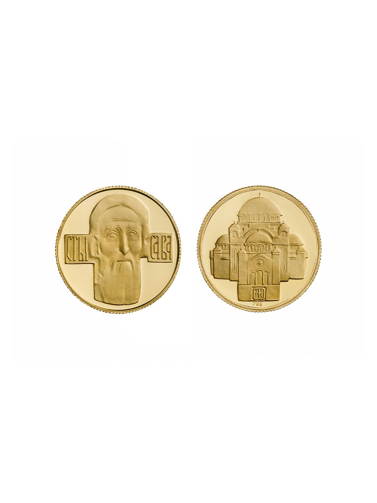 Dukat sa motivima Svetog Save. Zlatnik je izrađen od 22k zlata finoće 900/1000.